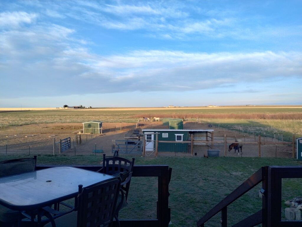 I then drove to Strasburg Colorado, to visit my high school friend and fellow clarinet player, Karen, and hang out for a night and a day before Aria was able to receive visitors in Denver. Karen has a beautiful view out her backyard: